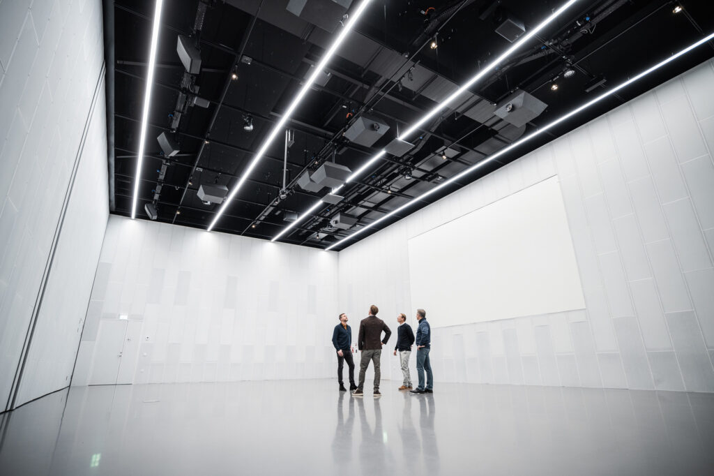 – Vi levererade en komplett akustiklösning till alla laboratorier, öppna trapphus och till auditoriet. I 360-salen har vi integrerat EcoSUND i vitt bakom hålperforerade vita plåtkassetter på väggarna, och svart EcoSUND i taket. Ett väldigt roligt och viktigt uppdrag för ett fantastiskt campus, säger Andreas Hultfeldt på Akustikmiljö AB.